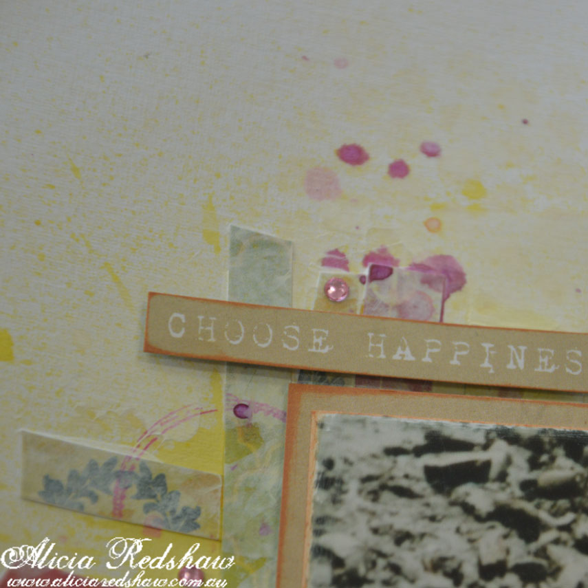 I have used loads of paint, stain, mist, stamping and masking to create my Mixed Media background.  I chose the Glitz Uncharted Waters paper pad for the title and the colours, which worked so well with my photograph.  That pink shirt was super bright in real life, and had the slogan “Think Pink” on the back – for the Cement Company (Ready Mix) that produced it as some sort of safety award my Dad and his workmates received.