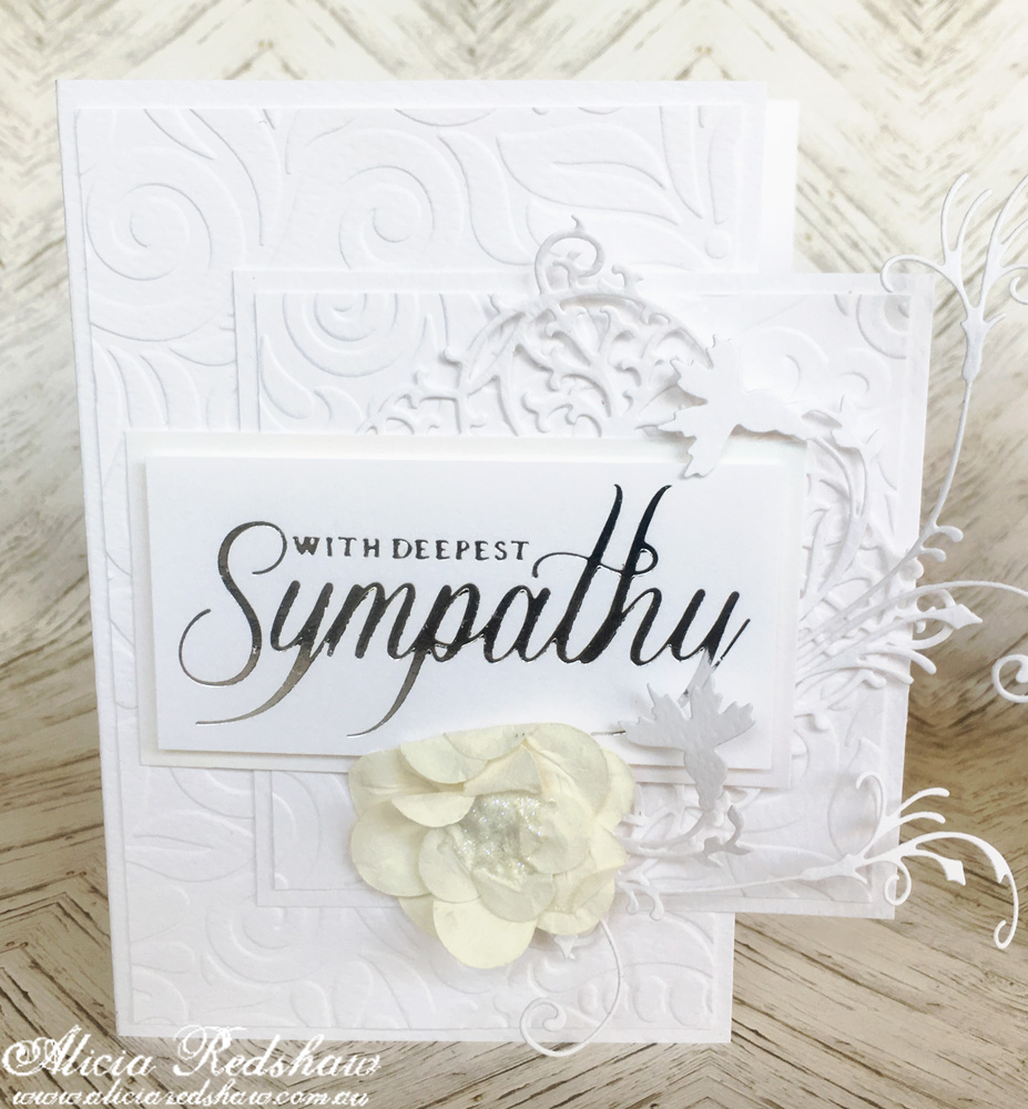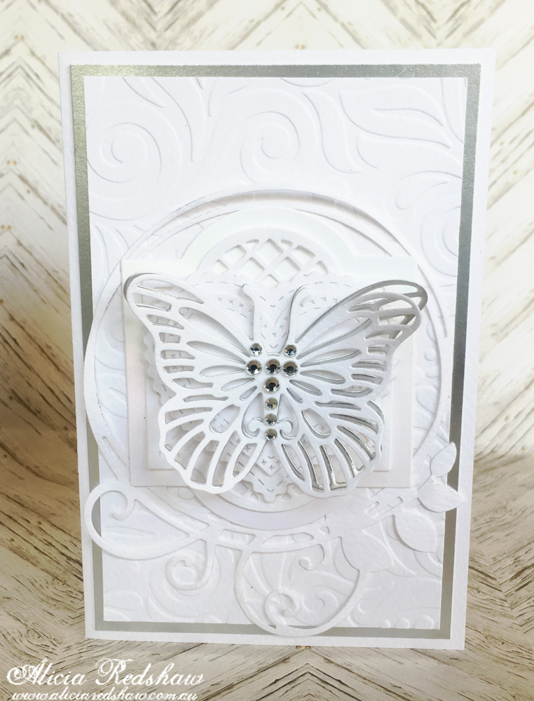 It is that time of the week again when I reveal the Cardmaking Class I will be teaching at my store (Scrapbook Fantasies) on Tuesday @ 10am, Wednesday @ 6.30pm and Saturday @ 10am, which is a pair of cards created with mostly white and a few touches of silver. Please note that it is a essential to book for the Wednesday night class.