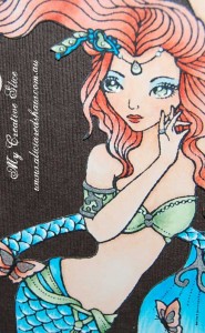Yesterdays card has a companion, another Copic coloured Sweet Pea image. I went wild with her hair again and love how it turned out. I have included a close-up of the coloured image as well. I used the gel pens to add details to the image after I had finished with the Copics. I forgot to mention that both cards (yesterday and today) are made using the October Card Competition Kit from Scrapbook Fantasies.