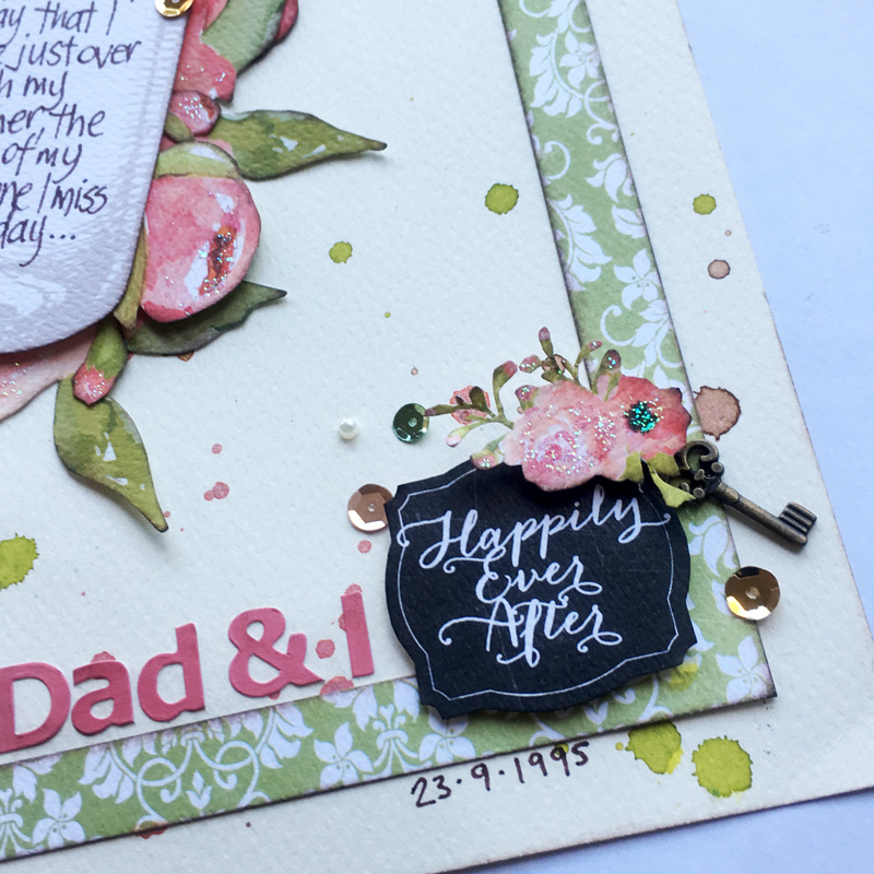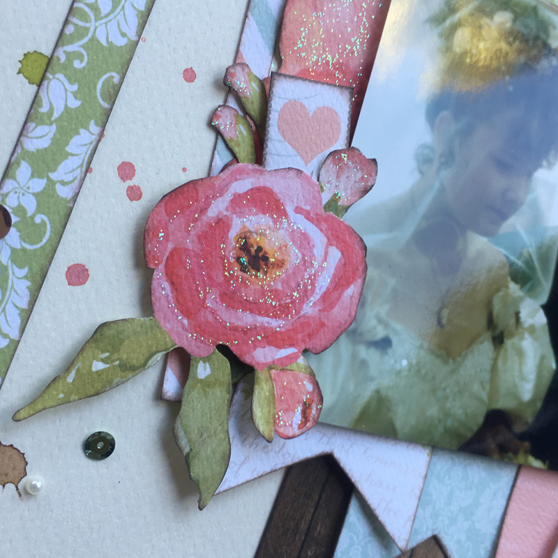 I have added some crystalina kindy glitz to some of the fussy-cut elements I have layered on my page.