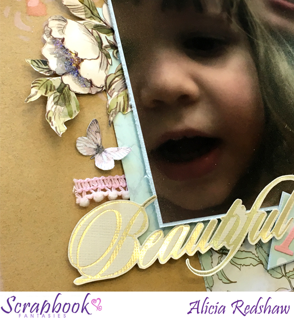 Welcome to the reveal of the Scrapbooking Class that I will be teaching at my store (Scrapbook Fantasies) this week, a layout created with the Fairy Garden collection from Kaisercraft.  The class is on Wednesday 7 March at 10am and 6pm – and costs just $17 which includes all materials and use of the my tools and mediums. Please bring along basic tools and adhesives, and if you have them a trimmer, foam tape, dimensional magic/glossy accents and fussy cutting scissors (fine and sharp).